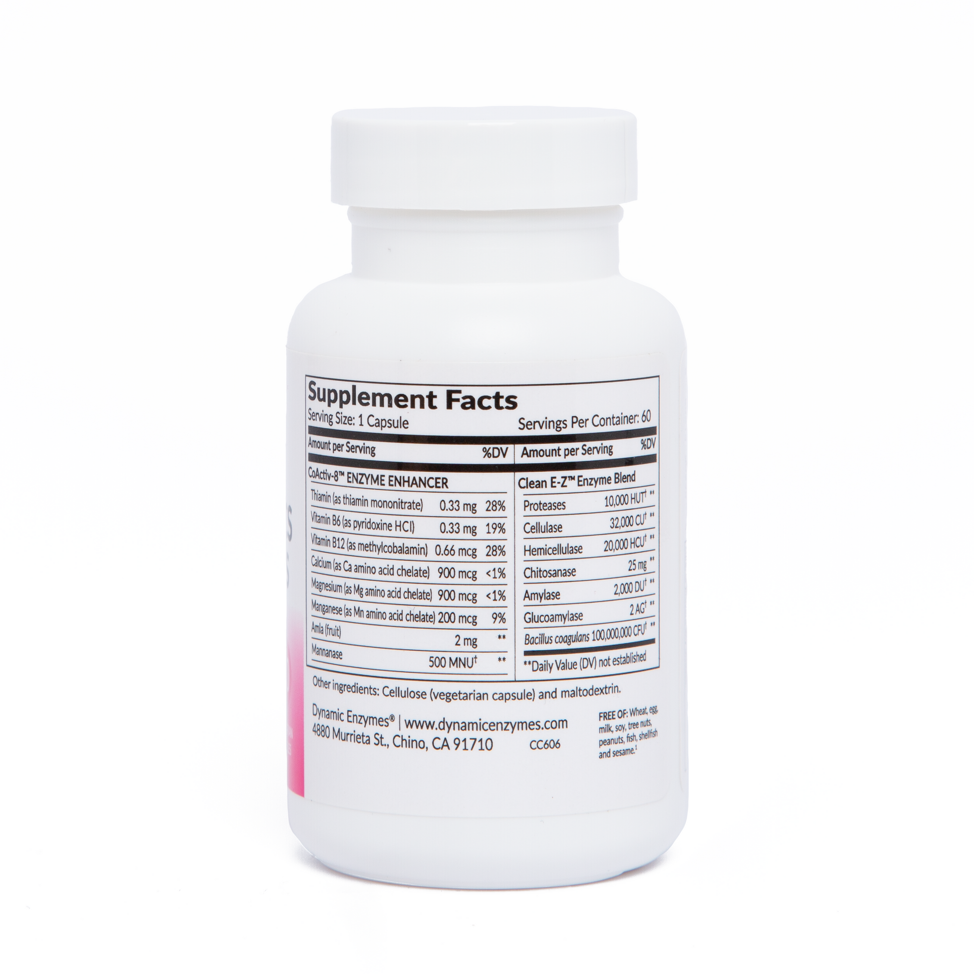 Clean E-Z Candida is a unique and efficacious gut health formula, one of the most potent on the market. It is manufactured in a ISO 9001:2000 and GMP certified facilities, and undergoes rigorous quality testing. In addition, Dynamic Enzymes’ signature CoActiv8 enzyme enhancer ensures all of our enzymes and probiotics work to their fullest potential, setting us apart from the rest.