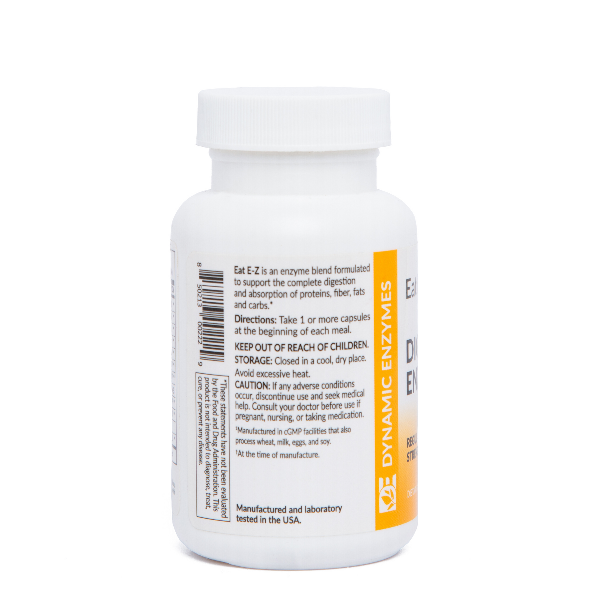 Eat E-Z is free of pesticides, chemicals, preservatives, animal derivatives, yeast, fish or shellfish, peanuts, and tree nuts. All individual enzymes are kosher-certified ingredients, and suitable for vegetarians and vegans.