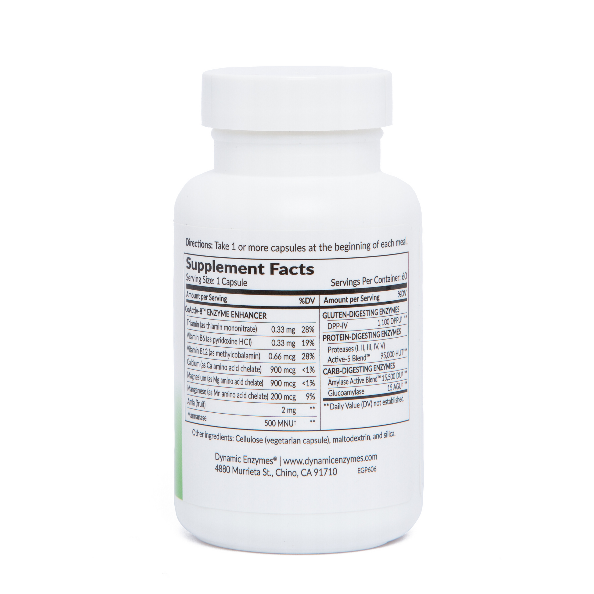 - Optimal digestion of gluten and casein in wheat, barley, oats, rye, as well as hidden gluten in processed or cross-contaminated foods