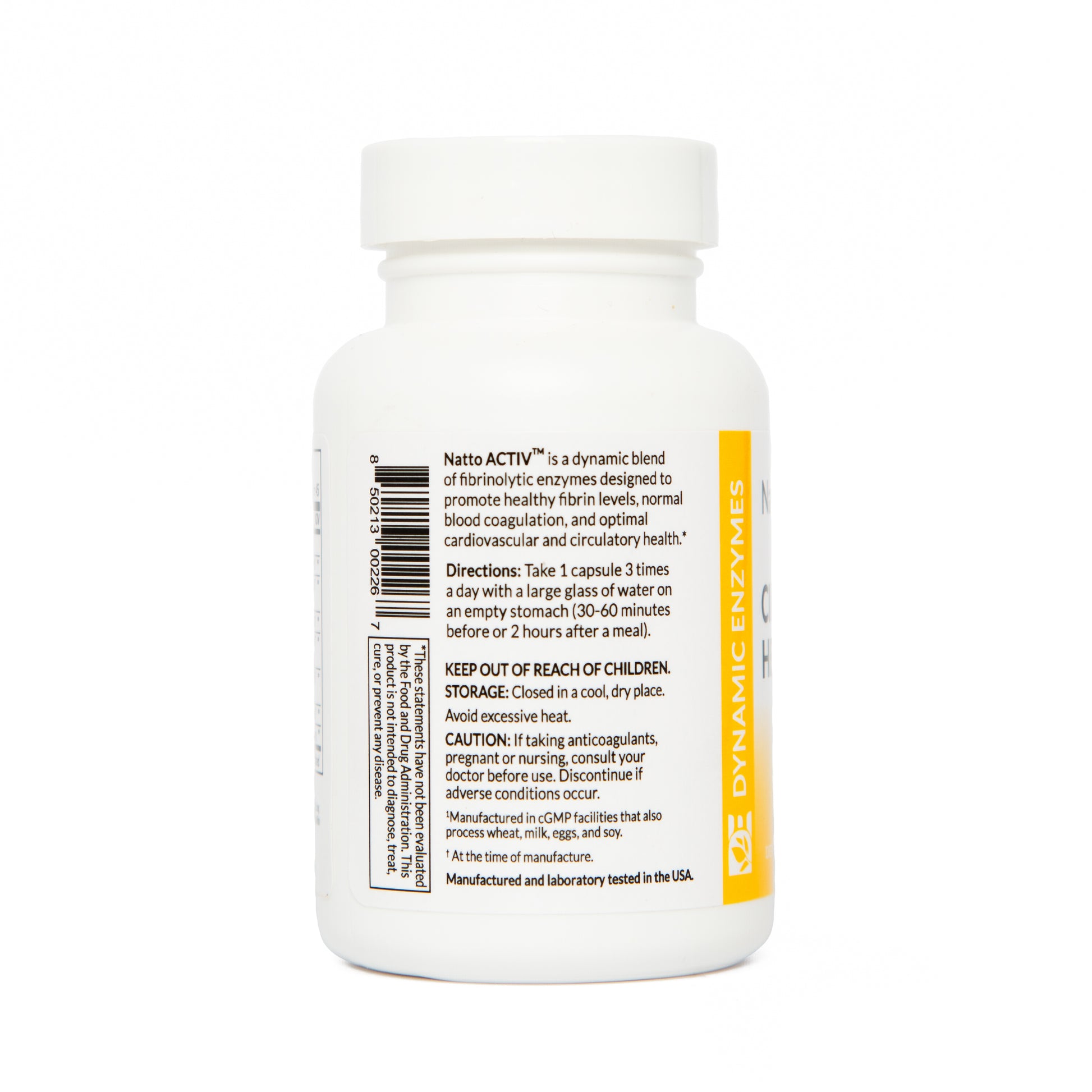 Natto Activ is one of the strongest fibrinolytic formulas on the market. It is manufactured in a ISO 9001:2000 and GMP certified facilities, and undergoes rigorous quality testing. In addition, Dynamic Enzymes’ signature CoActiv8 enzyme enhancer ensures all of our enzymes work to their fullest potential, setting us apart from the rest.