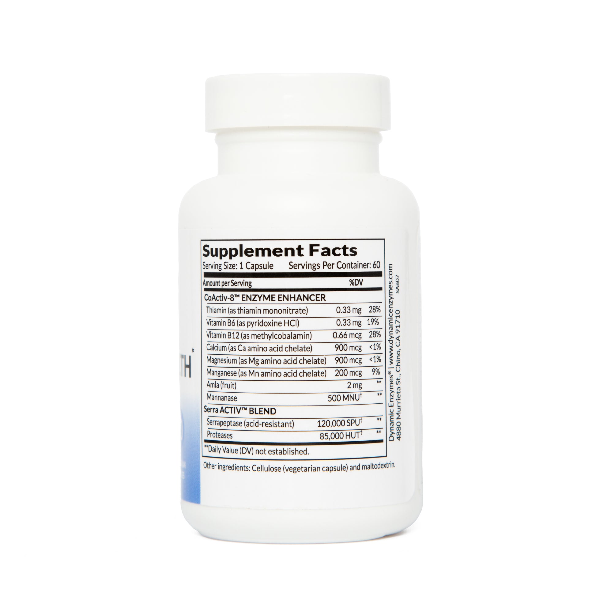 Serra Activ is an efficacious systemic enzyme formula, and one of the most potent on the market. It is manufactured in ISO 9001:2000 and NSF GMP certified facilities, and undergoes rigorous quality testing. In addition, Dynamic Enzymes’ signature CoActiv8 enzyme enhancer ensures all of our enzymes and probiotics work to their fullest potential.
