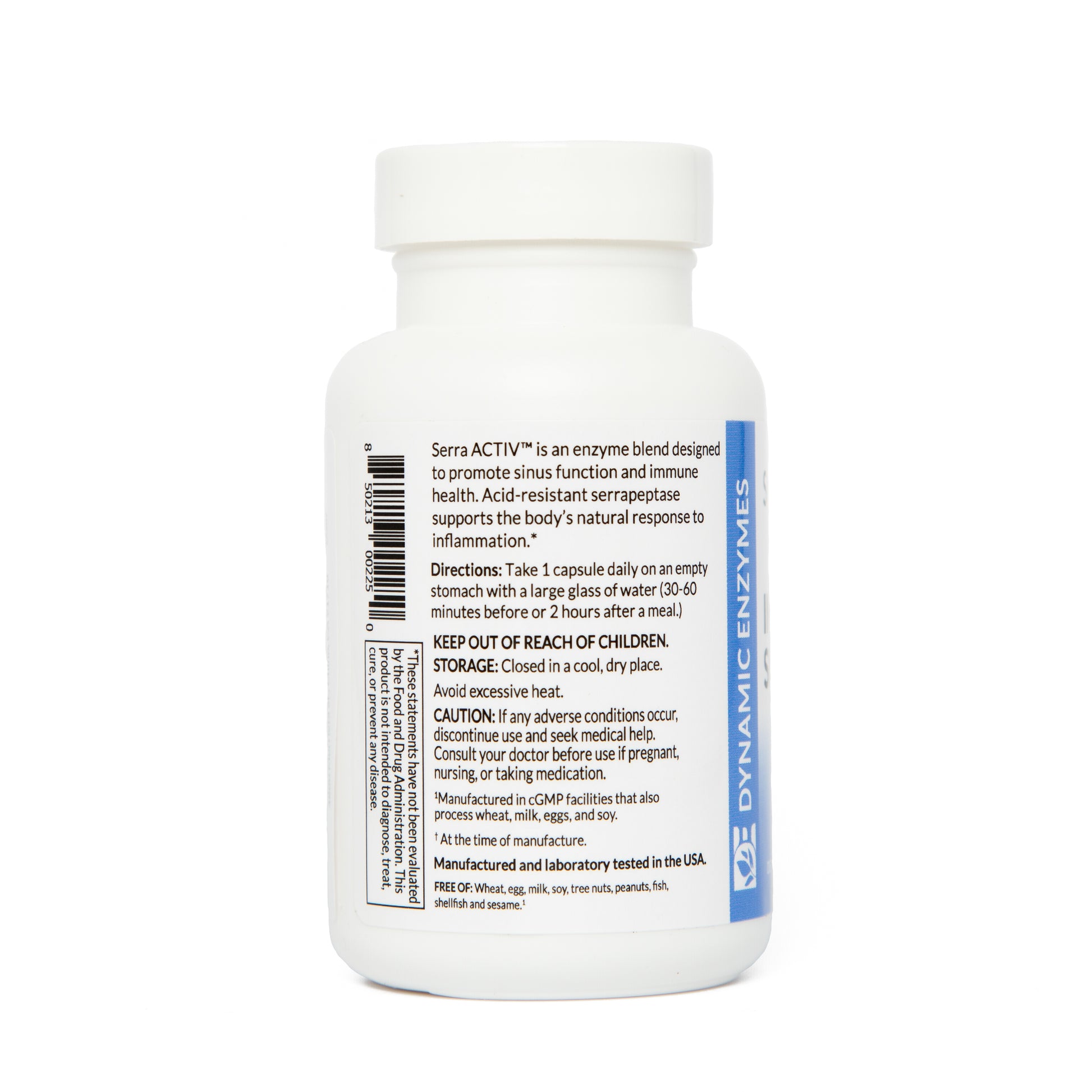 Serra Activ is a powerful systemic enzyme supplement with high-activity, acid-resistant serrapeptase and other potent proteolytic enzymes designed to promote sinus, respiratory and joint health.